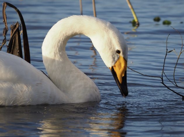 Welney is the best place in England to see Whooper Swans, for several thousand of these wild swans winter here. They are almost exclusively birds that breed in Iceland. They are also joined by Bewick’s Swans from Siberia, but in recent years the number of Bewick’s wintering here has plummeted. This is due to short-stopping, with milder winters allowing the flocks to remain on the continent. Twenty years ago over 3000 Bewick’s could be found on the washes; today the figure is usually below a hundred.
