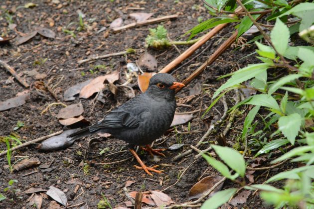Dark undergrowth is usually also the habitat occupied by Indian Blackbird. I really like the contrast between the slate-coloured body and bright orange bill and legs in this bird. These featured can be appreciated fully because unlike the bush warbler, the blackbird is pretty tame and often forages on the verges of paths. Sri Lanka Junglefowl (featured image) employ the same behaviour, making them one of the endemics most easily seen in the park.