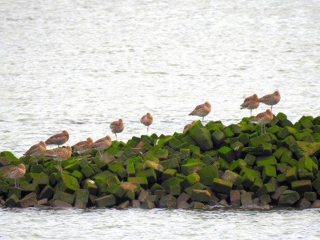 Eurasian Oystercatcher were to be expected, but the Whimbrels and the single Eurasian Curlew came as a surprise for me. Don’t know why I didn’t expect them, just didn’t. I also mixed up Bar-tailed Godwit with their brethren the Black-tailed Godwit. As a consequence, I was wrongfully surprised to see 50 godwits on the rocky shores of the canal, waiting for low tide. Biggest surprise of all was a single Barn Swallow that had decided that climate change can save one an arduous journey to Africa. Evolution in action?