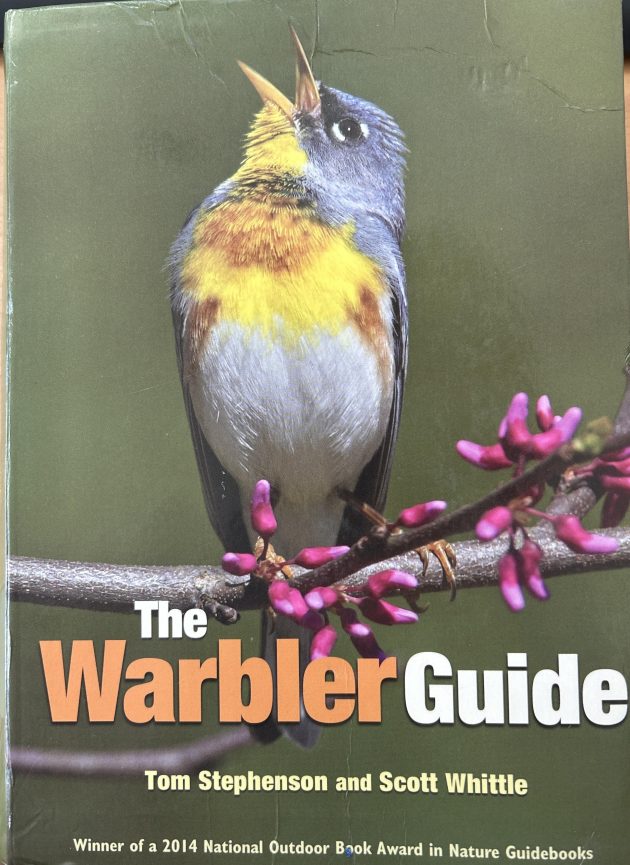 I recommend the American Birding Association podcast, 10,000 Birds, and Cornell University’s bird website. One of my favorite and much used field guides is The Warbler Guide by Tom Stepheson and Scott Whittle.