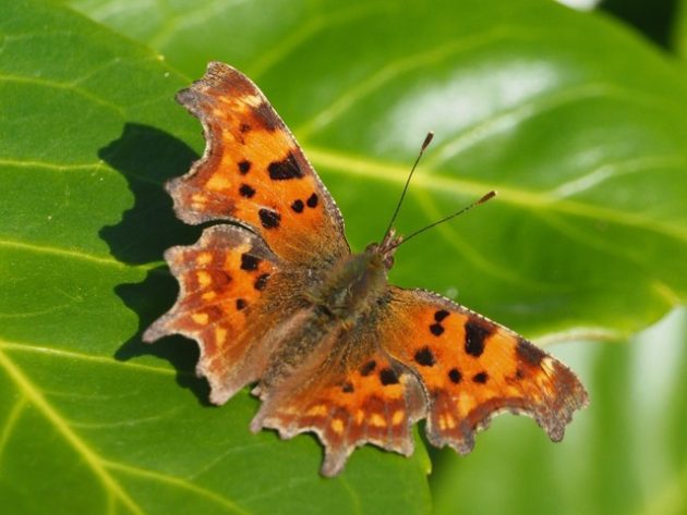 The distinctive Comma is one of the few species of butterflies that hibernates as an adult insect. The first usually appear on sunny days in early spring. I photographed this individual sun basking in my garden on 8 March