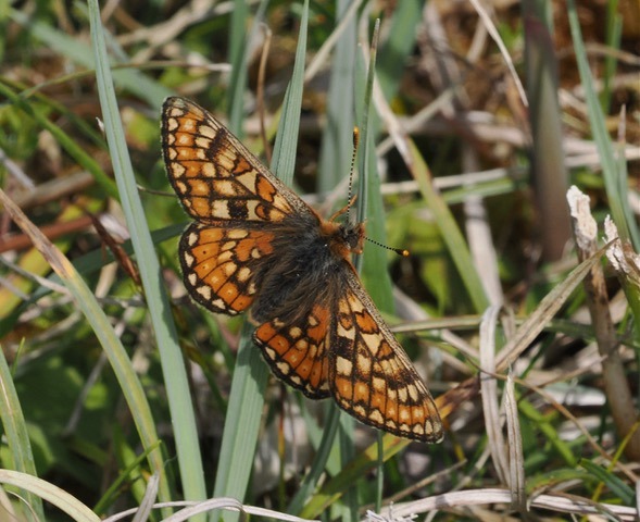Marsh Fritillaries are rare and endangered butterflies in England, so I regard myself as fortunate to have a thriving colony just a mile from home, which is where I photographed this individual on 1 May, another early date (Market Weston Fen, Suffolk)
