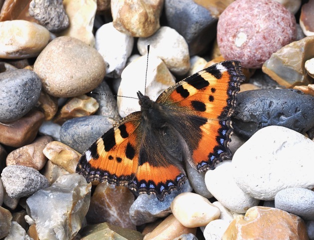 Small Tortoiseshell butterflies have declined drastically in England in recent years; last summer there were signs of a recovery. I photographed this insect in my garden at the end of May