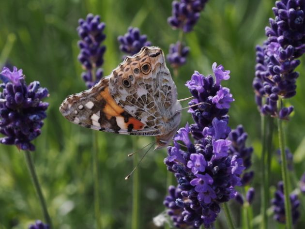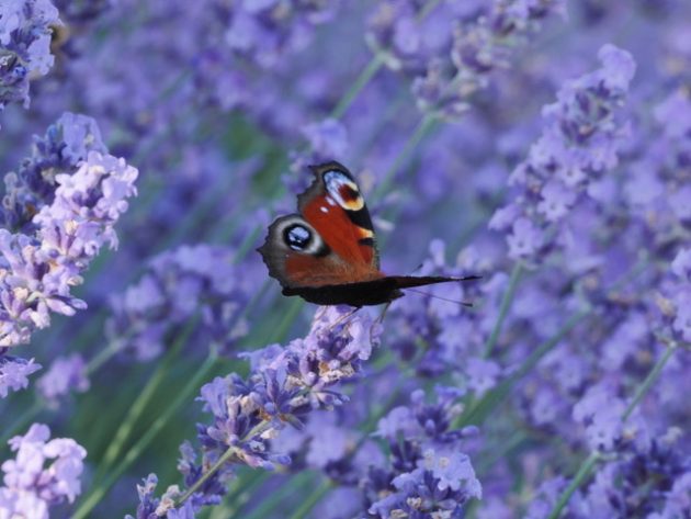 Lavender is a popular nectar source for many butterflies, such as this Peacock. It was photographed in my garden (30 June)