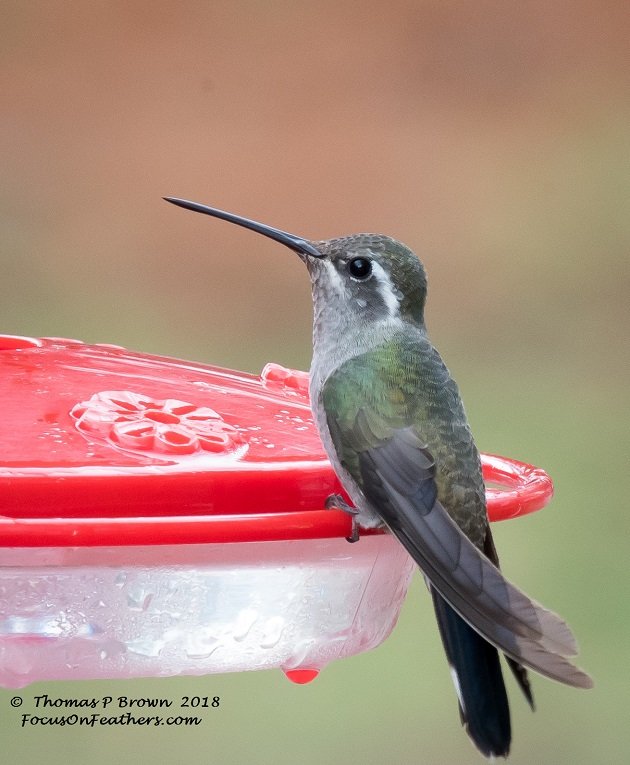 In addition to the hummingbirds, a few of the other highlights of the morning were the Gamble’s Quail, Inca Doves, Cooper’s Hawk, red-napped Sapsucker, Ladder-backed Woodpecker, Gila Woodpecker, Bewick’s Wren, White-wing Doves, Plumbeus Vireo, and of course, I finally got a decent photo for the White-breasted Nuthatch. I have seen these birds for the last three states, but they defied my every effort to get a photo. When the Coopers Hawk blew thru the yard looking for a meal, it just froze, and stayed right there for nearly 5 minutes, plenty of time for me to approach, and get this picture.