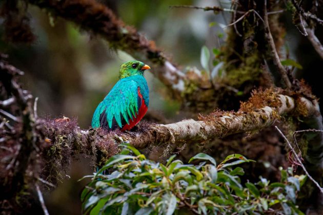 - Cloud Forest (Wayquecha / San Pedro): A true paradise for mixed flocks in montane cloud forest. Species such as Peruvian Piedtail, Cerulean-capped Manakin, Slaty Tanager, and Yungas Manakin are regularly observed. The Cock-of-the-rock lek here is one of the highlights, and raptors such as Black-and-chestnut Eagle are also possible. Other attractions include Golden-headed and Crested Quetzals, Amazonian Umbrellabird, Yellow-rumped Antwren, Rufous-booted Rackettail, and Solitary Eagle.