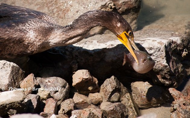 In this case, the cormorant was stuck with the fish in its mouth for a while, but managed to shake it free, went away none the worse for wear, still hungry, able to try for something a little less dangerous to consume.
