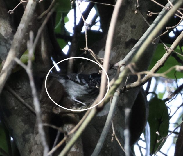 A marvelous little bird that we saw well—male, female and juvenile—and I was shocked to be able to get any photo at all. You must look closely to see it, but the bird’s eye is visible.