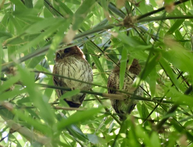 The story of seeing the owls is a good one. Thinking we had finished birding Maricao State Forest, we were on our way out when we drove by several stands of enormous bamboo growths. Our guides speaking, more or less, to themselves commented that it looked like a good spot for owls. In a great minds think alike moment, suddenly the van made a U-turn and we were headed back to the bamboo stands. Dušan had a thermal monocular, a compact, handheld device that detects infrared radiation (heat) and converts it into a visible, real-time image. He had used the thermal monocular device the night before for everyone to see the Puerto Rican Nightjar (Antrostomus noctitherus). Once found, and with the aid of high-powered flashlights, we somehow all managed good looks at several nightjars, in pitch darkness, through the spotting scope. For the daytime search for owls, Dušan found the thermal monocular effective as long as it was overcast and the sun was not shining on the subject. It was in this way that he found the owls perched together, way up high, in a stand of bamboo. After our challenging binocular search and locate, came our photo attempts; everyone angling for a clear camera view and, with the help of our guides, smartphone digiscoping. It’s hard to describe the degree of difficulty, but I think everyone was satisfied with their views and with their photos. We no longer had any need to go out at night for the owls and a new daytime roost site for the PR Owl was discovered. I was pleased with my camera photos and my smartphone digiscoped images are also nice.