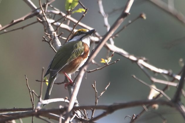 When we reached the mature pine forest at the end of this walk, I was a bit disappointed that I had been unable to introduce Brent to my absolute favorite pine-oak bird, the beautiful and quirky Chestnut-sided Shrike-Vireo. But we were running out of time, so we started back towards town. And that is when we heard the Shrike-Vireo’s siren call in the distance. A few whistled answers, and there it was, as close as I have ever seen this species.