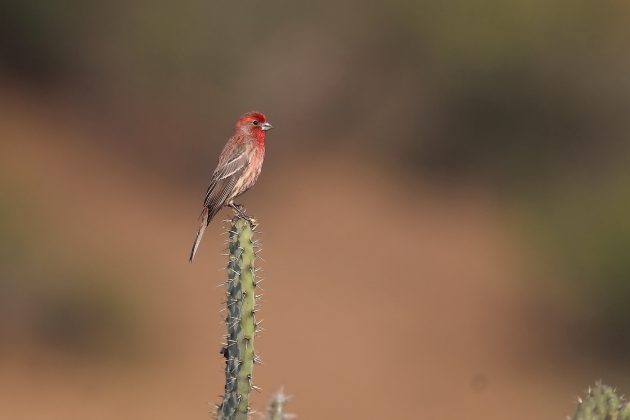 House Finches are everywhere. Prickly Pears don’t bother them at all.