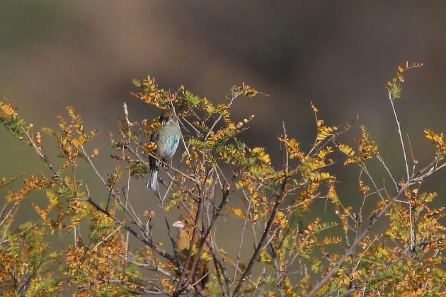 Migratory Indigo Buntings are also quite common by the reservoir. Most males, like this one, in winter have only remnants of their indigo summer finery.