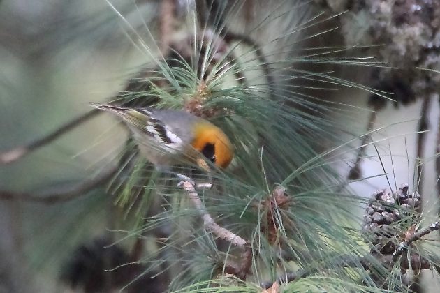 Olive Warblers, which are not wood warblers, are very unusual in that they prefer pines over oaks. This is not a great photo, but it’s better than most of my other attempts.