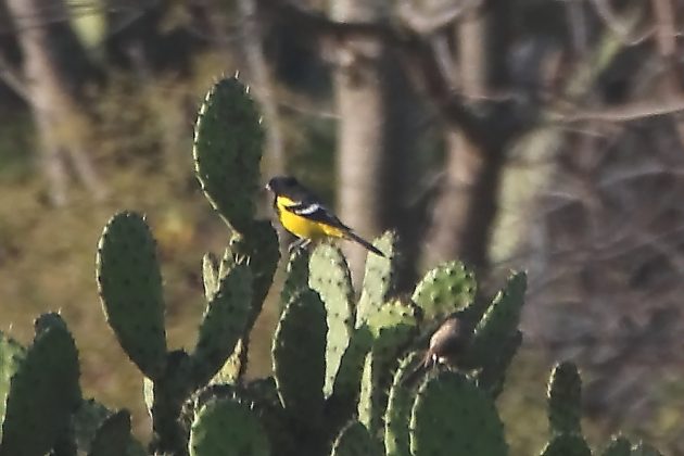 Scott’s Orioles, unusual among New World orioles for their pure yellow tones on males, don’t just put up with prickly pear plants. They like them so much that they are called Calandrias tuneras (Prickly Pear Orioles) here in Mexico.