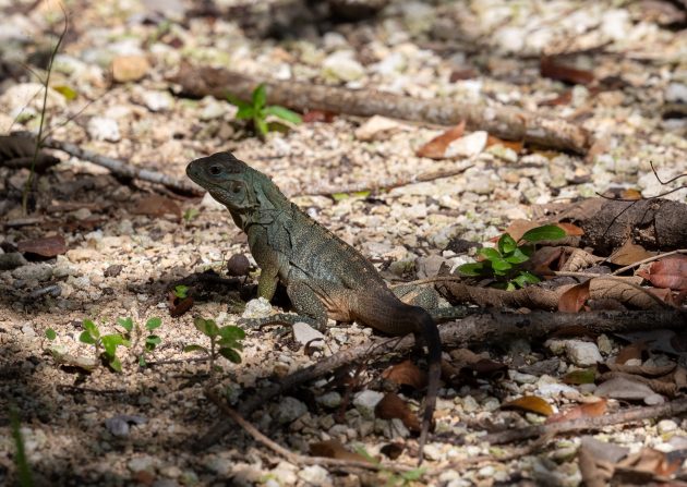 Geddes is familiar with this site, so we drove around to the back, where the nursery for the garden is. The pathways had several Blue Iguanas of all sizes. This species is critically endangered, but a breeding program has been in place to bolster the population. Also in the back was a Grand Cayman Bullfinch, Western Spindalis, and Caribbean Elaenia.