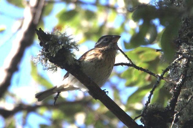 Female Rose-breasted Grosbeaks have patterned heads and streaked breasts.