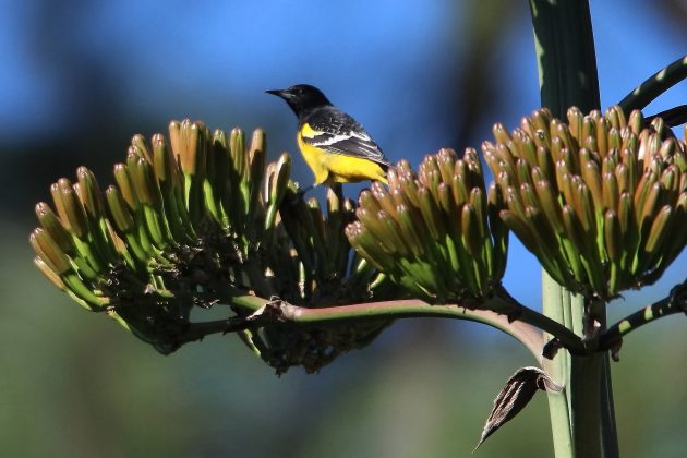 And then a Scott’s Oriole turned up. While all our orioles are brightly colored, the Scott’s is less common, which makes it a personal favorite. In Mexico these are called Calandrias Tuneras, indicating their love for prickly pear flowers and fruits. But they like agave flowers also.
