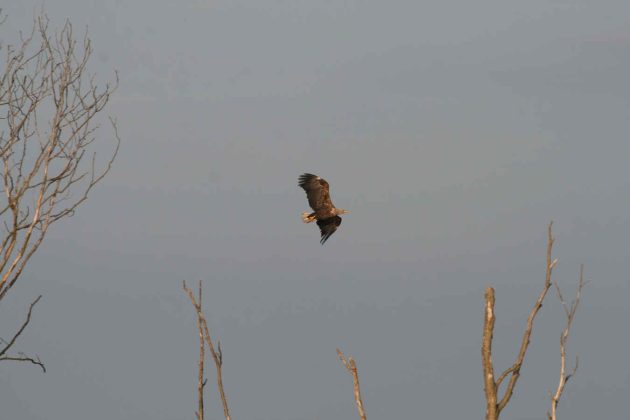 The main attraction to most birders will be waders (or shorebirds for American readers). On a good day, this area will easily produce 20 to 25 species, and these can sometimes be encountered in the salt marshes from a single spot in one scan of the scope. The highest count that I know of is 31, but that’s outstanding. It’s just about the only area in Germany where your chances of finding Broad-billed Sandpipers and Red-necked Pharalopes in August are close to 100% (with flocks of Caspian Terns added to the mix), and Marsh Sandpipers are very realistic in April. Autumn and winter are – of course – the prime seasons for waterbirds, with all regular goose species migrating through in large flocks, including Taiga Bean Goose and a Red-breasted Goose or two each year. Late winter / early spring can be breathtaking when Greater Scaup and Long-tailed Ducks will form flocks several tens of thousands strong far out on the bay. This is also an area where White-tailed Eagles are a regular and common sight – there’s never a day without seeing a few. Raptors in general are rather common, and 10-species days are easy to achieve. Another highlight next to the White-taileds are Lesser Spotted Eagles breeding in forests west of the city. Those forests (including the famous one of Eldena) also have breeding Black, Little and Middle Spotted Woodpeckers, as well as Red-breasted Flycatchers. Songbird variety is significant as well, especially during the breeding season. The highlights amongst the breeding birds from a central/western European perspective are species more readily seen further East: Greifswald has all three Locustella warblers – yes, including River Warbler – and all five Sylvia warblers – yes, including Barred Warbler. Add to this Crested Larks, both Nightingale species, Bluethroat, Bearded Reedling and Corn Bunting, and there’s never a dull moment.