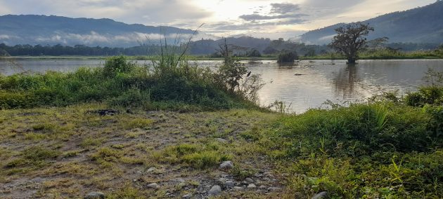 Fresh and misty morning soon turned into a warm and sunny day, with a sky full of swallows: Blue-and-white, Southern Rough-winged and Barn Swallows. We were heading to La Angostura Lake (cover photo and yes, like the aromatic bitter, no one was able to tell me why), the largest water body in the Turrialba area, created by damming the Reventazon River. Driving a huge 4×4 across a tiny, improvised bridge, Daniel sneaked through the forest to the shallow back side where the river enters the lake.