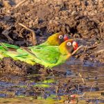 The Red-breasted Sapsucker (Sphyrapicus ruber) and the Red-naped Sapsucker (Sphyrapicus nuchalis) were considered different forms of the Yellow-bellied Sapsucker (Sphyrapicus varius) until 1983 when they were split into separate species. They are called sapsuckers because they create sap wells in the bark of woody plants and feed on that sap.