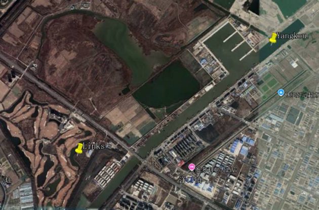 - Accommodation: Foreigners have no problem finding many hotels in Jianggang and Yangkou.The most expensive (indicated by the yellow “Links”) one is at Yangkou, with a golf course (“Links Golf & Spa”). The hotel supports our NGO, the Spoon-billed Sandpiper, in China’s local conservation effort. A 15m X 15m huge Spoon-billed Sandpiper made from thousands of clam shells collected from the mudflat was finished by students from Rudong and erected in front of the hotel.