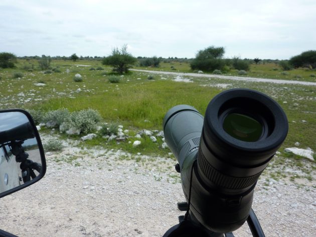 Here my scope is set outside my car to allow me to digiscope the Lion (below) from the driver’s seat. This was in Etosha National Park, Namibia, where it is forbidden to get out of a vehicle
