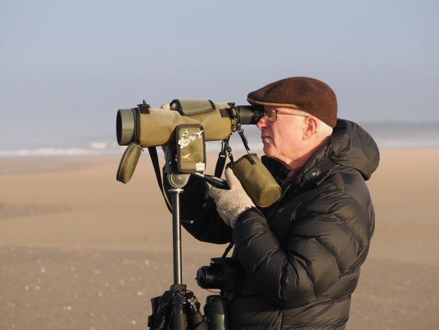 These days telescopes, or so-called spotting scopes, are standard kit for most serious birders, but this is a relatively recent phenomena. Fifty years ago it was rare to see anyone with a scope, with the exception of avid sea watchers who would use wonderful old brass-bound draw-tube scopes to search for distant skuas and petrels. These ex-naval telescopes were so long that watchers would lie on their backs to use them, with the objective-end of the scope resting on their feet. You had to be keen to use one, but to do so marked you out as one of a select band of dedicated birders (though the term birder was then rarely used).