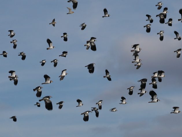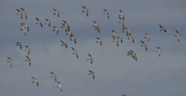 Golden Plovers (above) and Lapwings (below) over Titchwell marsh