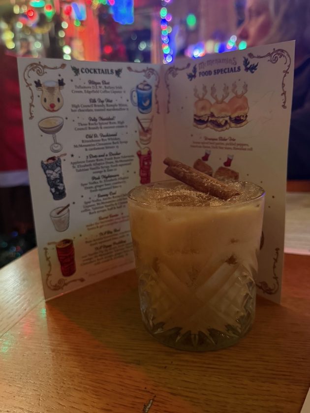 Later, I celebrated the sighting with a Snowy Owl cocktail available at a Christmas pop-up bar at one of my favorite spots. The drink was a bit spicier (think White Russian with Ancho Reyes Chile Liqueur) than I imagined this gorgeous, soft plumaged bird might be, but it still hit the spot.