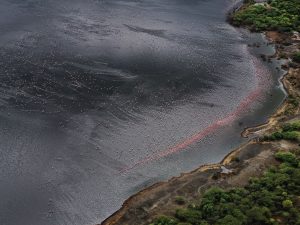 Part One of the book concerns the Lesser Flamingo, which has, Dr. Bondar observes, four separate wild populations in the world, in Africa and western India and Pakistan. The biggest such population is in the East African Rift Valley, which hosts the greatest breeding activity on Lake Natron, in an endorheic basin (its water never reaches the sea) part of which is shown below: