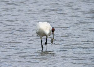 In the fall, the whoopers undertake a 29-day, 2,600 mile migration from Canada to southern Texas, where they reside in the Aransas National Wildlife Refuge, and eat as many as eighty blue crabs (as well as other plants and animals) a day: