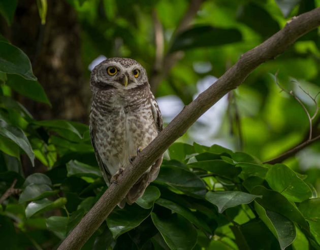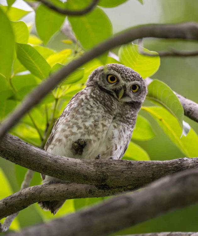 Apparently, it does not mind living close to human habitation (source). The reason is not that it loves humans (that would be stupid and strange, says the misanthrope in me), but rather that the preferred food of Spotted Owlets is more abundant near villages. And feel free to replace “preferred food” with “rats”. So, not really a strong endorsement of the human race.