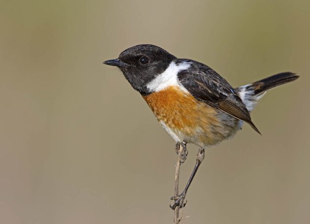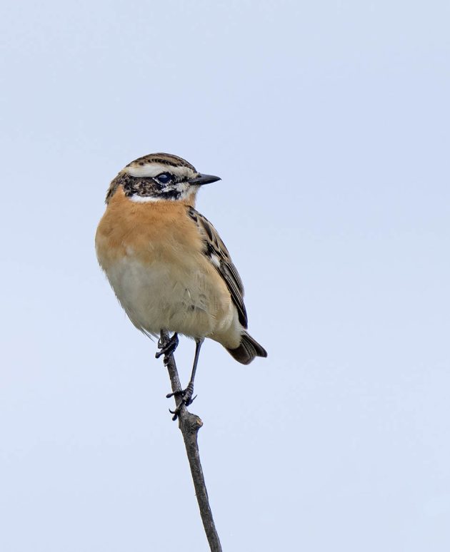 Other chats are now leaving us. They include Northern Wheatears (Oenanthe oenanthe), the last ones typically the Greenland sub-species, leucorhoa. Whinchats (Saxicola rubetra) are also departing. Less obvious than the case of the Black Redstart is that of the Stonechat (Saxicola rubicola) simply because there are many resident Stonechats in our area. But look carefully and you’ll soon realise that there are many Stonechats in locations where you wouldn’t expect residents. These birds are from western European populations – Belgium, France, United Kingdom, for example. Their arrival, too, is accompanied by intense territorial activity.