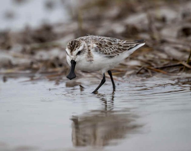 A closer look. The Spoony is paler than Dunlins and Red-necked Stints, although not as pale as Sanderlings. Light condition often makes it tricky