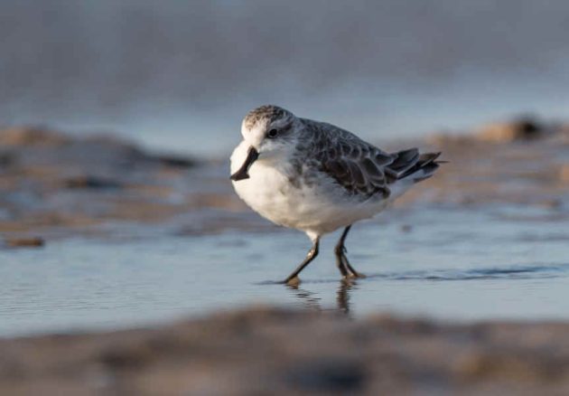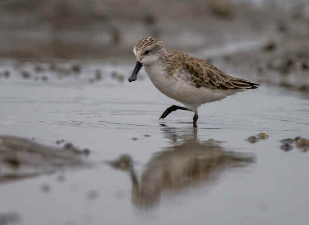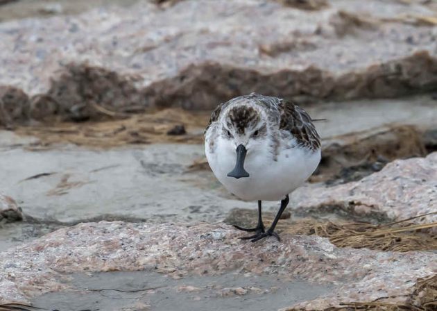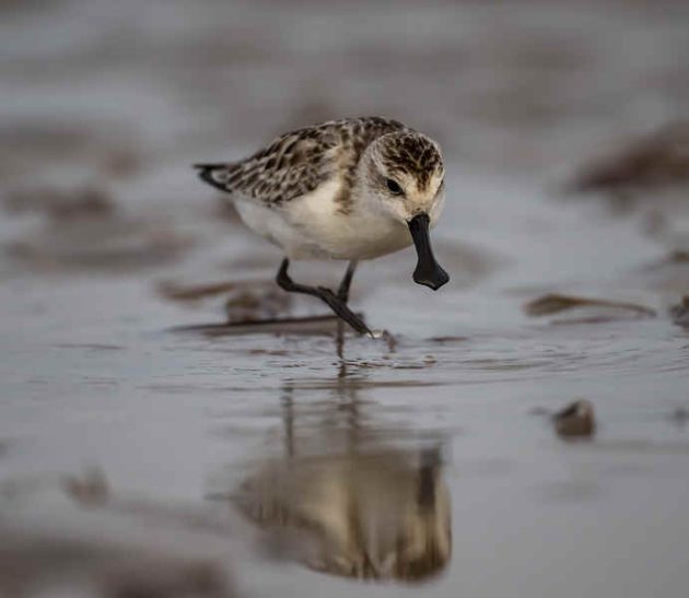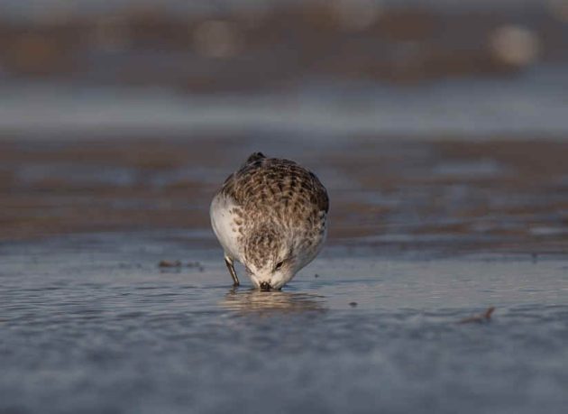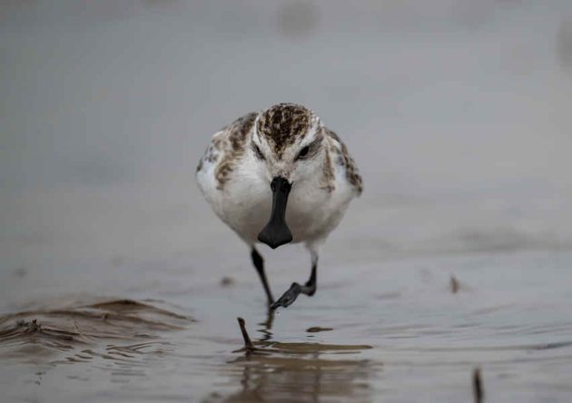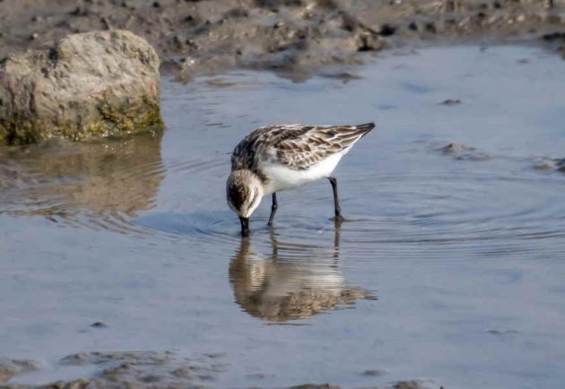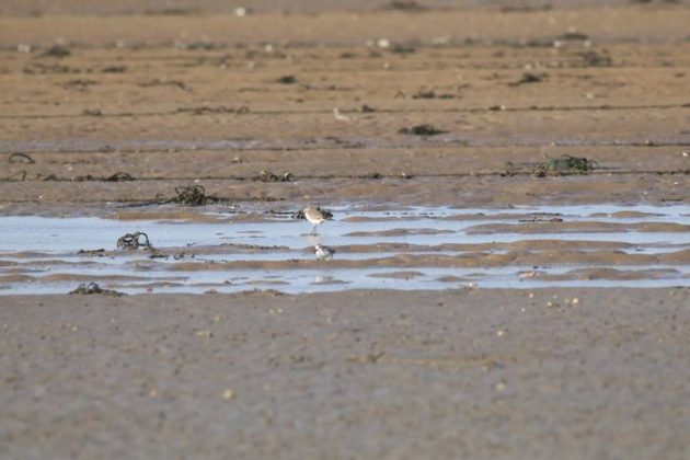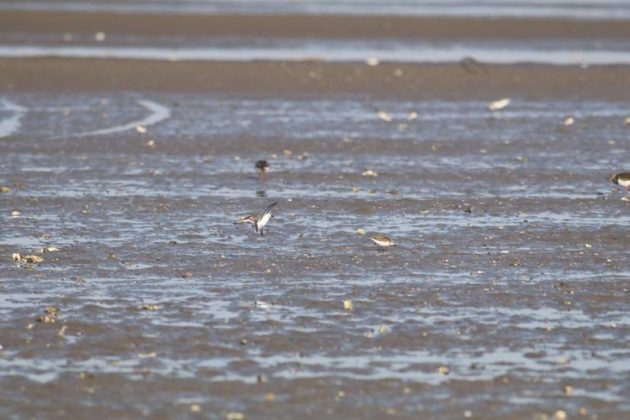 A Spoony with Great Knots. It’s not easy to identify a Spoony in a photo, but it’s easier in a motion picture as the feeding action is quite different from others, such as Red-necked Stint, Dunlin and Sanderling, which are common here. The things in the water are where some of them roost at high tide.