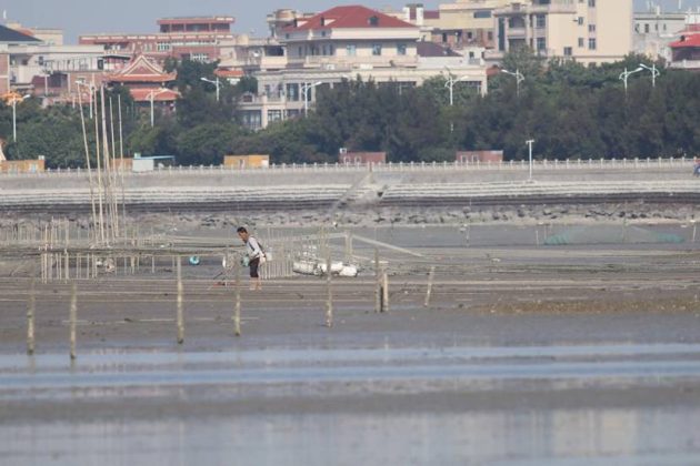 We moved on to Weitou Bay. Although it’s not difficult to find a Spoony feeding at low tide, it’s not easy to figure out where they go at high tide. One high tide roost is obviously inside again a factory area, which we didn’t get into. There are some restaurants that obviously mainly serve the factory workers, and we could get food and drinks here. And of course, all the creeks from the factories to the mudflat contain dark water. No wonder a study on pollution level in waders’ feathers indicates Guangdong is the worst, followed by others, probably including Fujian.