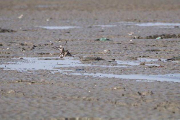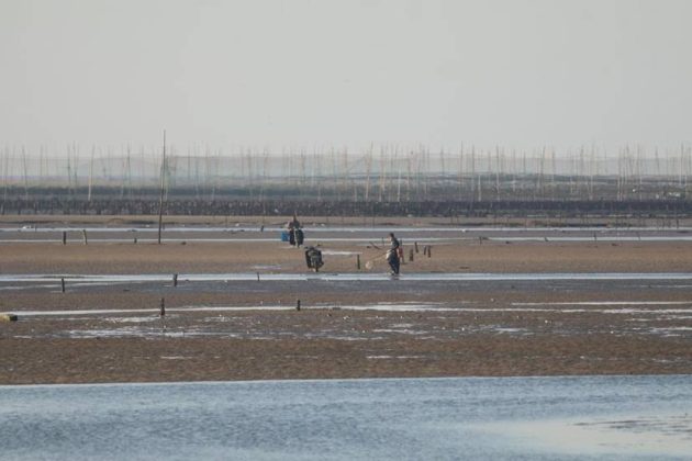But it’s difficult to walk on the mudflat here, so we focused on watching them at high tide. We found that many large waders flew north toward Quanzhou city. Although we failed to find their high tide roost, we did find out where the small ones roost–next to shoe makers!