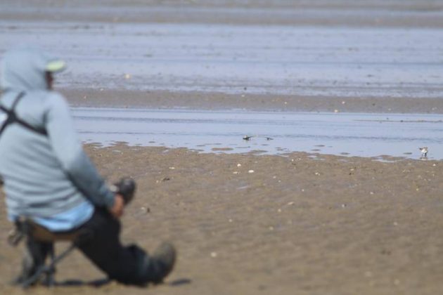 A Spoony with a Greater Sand Plover working on a Sand Worm