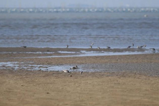 Weitou Bay has very few waders, e.g., only 1000+ Dunlins, and it’s fairly easy to see a Spoony. Quanzhou Bay has 10000+ Dunlins, the largest ever I have seen anywhere in southern China, as mudflats here are much, much smaller than in Jiangsu. It’s usually very promising to find a Spoony if you find such a large number of small waders–in winter in southern China, the Dunlins.