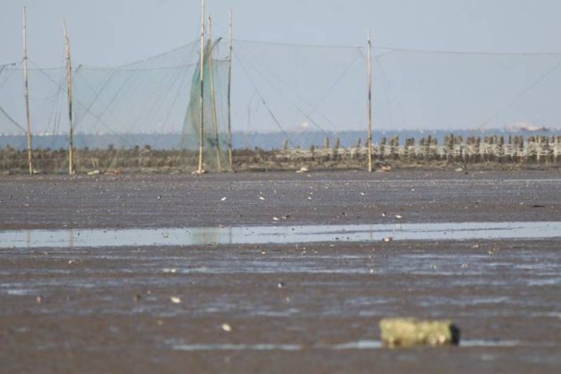 Occasionally, a Spoony can be entangled in these nets. It needs luck to be found by a birder and released before the tide rises.