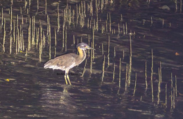 - White-eared Night Heron – Endangered Bird from Eastern China, winters in Sundarban in very small numbers. Only forages in the dark during low tide on open mudbanks along narrow canals. Using a thermal camera and a spotlight is your best bet to see this bird in the Sundarban.