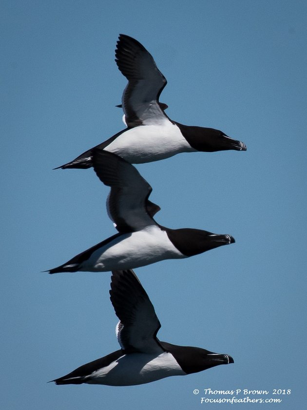 We got to get out on the water, in the very north east corner of Scotland, at Ducansby Head, in John O’Groats, looking at the 10’s of thousands of birds nest and rooting on the ocean side cliffs near by. Jeanne took the photo at the top of this story while I was photographing this astounding number of birds. White we were out there, I captured this group of Razorbills, returning to their nests, more than likely with the bellies full of fish for the young.
