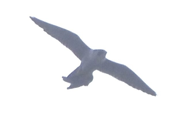 But would my best photo show a Peregrine Falcon? Well, here’s the problem: I travel with a smaller Olympus camera, and have not yet learned how to take good photos of birds in flight with that camera. I only managed to take two photos of these falcons, one of them no more than a silhouette. The other shost required a ridiculous amount of manipulation to move beyond that condition. But in the end, I was able to just barely see that facial pattern, as well as the classic Peregrine shape (along with its unidentified prey, probably a pigeon). And even though no one had registered a Peregrine Falcon on eBird for the town of Senlis, it did result that they had been recorded in many other towns and cities of northern France in that and previous Novembers.