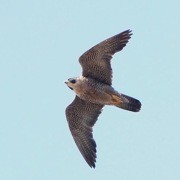 Wikipedia, and every other source I could find, suggests that the Peregrine Falcon’s name means that it comes from foreign lands, a name due to early falconers catching this bird during migration, rather than taking it from the nest.