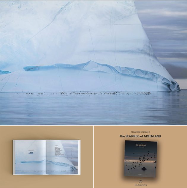 Two birders I know visited Greenland last year, 2025, which is two more than before 2025. Greenland has historically gotten short shrift from birders, who usually opt to visit Iceland, 180 miles away (using their closest points) when looking for pristinely beautiful, icy landscapes with few passerines and many alcids. But the country, a territory of Denmark with self-rule, has been in the news, and its visibility may have sparked interested from ecotourists. There is little about Greenland in the birding literature, one of the reasons I welcomed the opportunity to review The Seabirds of Greenland. This large book with stunning photographs, many full-size, has all the basic characteristics of a scrumptious ‘coffee table’ book, yet it also features articles by research scientists, giving it an authenticity and depth that many coffee table books lack. The authors’ aim “is to try to share our fascination with seabirds,” to answer questions “you may have after a trip along the coast of Greenland–or on your couch at home,” and, I think, to make a case for the unique value of this major resource and why it should be conserved and treasured. It’s important to note that all proceeds from the sale of this book will go back into more research, via the Oceans North Kalaallit, a Greenlandic NGO, another major reason why I wanted to do this review.