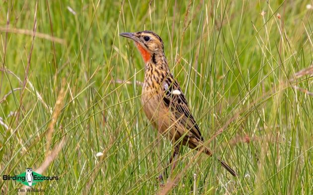 3) Grimwood’s Longclaw is a very localized bird with an orange-pink throat