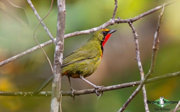 7) The Perrin’s form of Gorgeous Bush-shrike (which shares the same impenetrable Mavunda habitat as the very localized Margaret’s Batis, but I chose the more brightly-colored species)