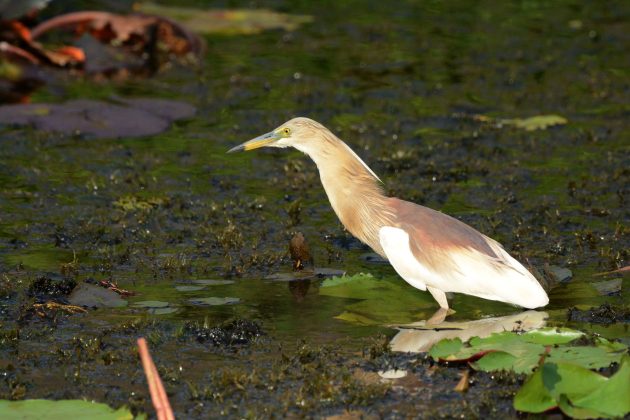 Indian Pond Herons are surely one of the most abundant birds here. The combination of broan and white plumage with blue in their bill as their breeding colouration makes them surprisingly beautiful. They usually stand motionless at the water’s edge for ages, and when you decide that it’s not worth focusing your camera on this frozen beast and turn around, they suddenly pounce on some unassuming fish under water. However, this paper shares an interesting sighting of this species floating in the water to catch fish, a seemingly more innovative technique.