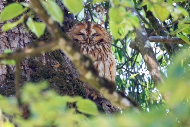 Arguably more popular than Goosanders among all stakeholders are the Tawny Owls in the Nymphenburger Park. Perhaps this is because their diet is comprised partly of animals considered to be pests rather than game. I am aware of four roosting sites of these birds in the park (seasoned local birders probably know a few more), and on most visits a bird can be found in one of these places. Owls will probably never make it on the list of ‘dull’ species regardless of how common they are, partly as their abundance is a pretty bad indicator of how regularly you come across one. Tawny Owls, as a widespread and common species, are a case in point – I think I’ve only seen three or four of them away from these roosting sites. In that sense, these stake-outs could be considered cheating. I initially considered reflecting on how stake-outs even risk seeing these lovely birds gradually appear on the ‘dull’ list, but then realised that this could be construed as quite scandalous politically motivated writing on behalf of the owl defamation league.