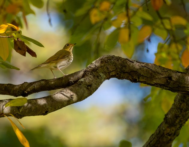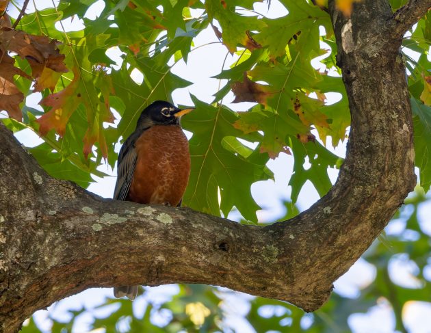 A Swainson’s Thrush skulked quietly in the shadows on a tree in the parking lot, while an American Robin sat quietly on a huge branch.